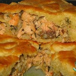 Пирог с красной рыбой и рисом